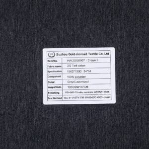 HW 20200007 2-Layer 100% polyester 2/2 Twill cation fabric P/D+W/R+PU milky membrane WP/MVP: 5K/5K