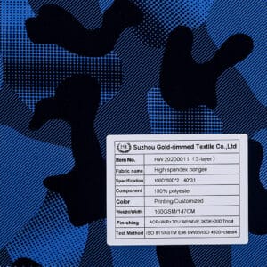 HW 20200011 3-Layer 100% polyester High spandex pongee fabric AOP+W/R+TPU WP/MVP: 3K/3K+20D Tricot