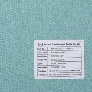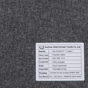 HW 20200013 2-Layer 100% polyester cation fabric P/D+W/R+TPU clear membrane WP/MVP: 5K/5K