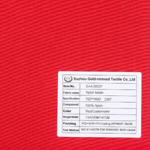 G+A 00037 2-Layer 100% nylon Taslan P/D+W/R+PU Coating WP/MVP: 5K/3K for Shell Jacket,Skiwear,Outdoor Clothing,etc