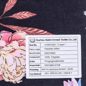 U10001024 2-Layer PU Laminated 100% Polyester oxford fabric with printing and Breathable PU membrane WP/MVP: 10K/5Kfor Shell Jacket,Skiwear,Outdoor Clothing,etc