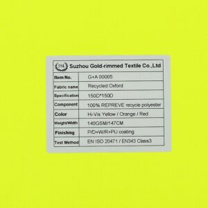 G+A 00005 2-Layer Recycled 150D oxford Fabric P/D+W/R+PU coating with EN 20471 and GRS certificated