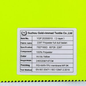 YGP 20200010 2-Layer 228T Polyester full dull taslan Fabric with EN20471 certificate for Personal Protective Equipment (PPE)