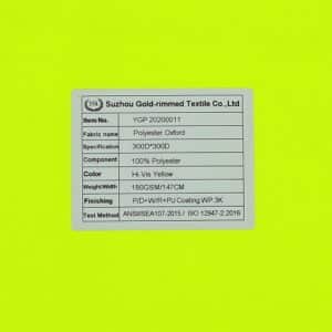 YGP 20200011 100% Polyester 300D Oxford Fluorescent Yellow Fabric with EN20471 certificate for Personal Protective Equipment (PPE)