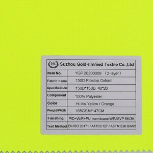 YGP 20200009 2-Layer 100% Polyester 150D Ripstop Oxford Fluorescent Yellow Fabric with EN20471 certificate for Personal Protective Equipment (PPE)