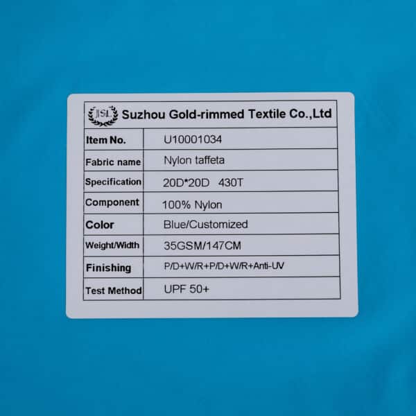 This is Nylon taffeta fabric P/D+W/R+Anti-UV meet with Anti-UV 50+ ,its face material is a super thin nylon taffeta fabric with water-repellent and Anti-UV finish.It is super thin,anti-uv, water and wind resistant,waterproof,breathable,durable,ideal for sun-proof clothing,Anti-UV jacket, super light wear etc.