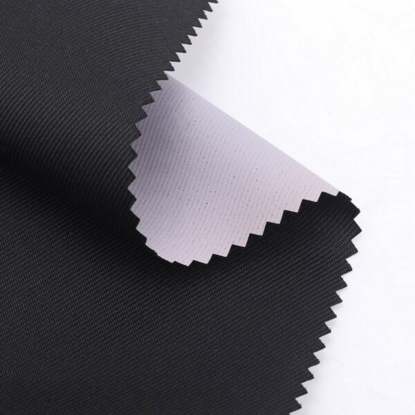 This is a PU coating Waterproof Breathable Recycled polyester 2/2 twill gabardine fabric,its face material is a Recycled polyester gabardine Fabric with water-repellent finish,its back material is a waterproof breathable PU coating.It is water and wind rsistant,waterproof,breathable ideal for jacket,outerwear,outdoor clothing,workwear etc.It will require a 3rd protective layer or tricot,mesh or fleece for most applications.