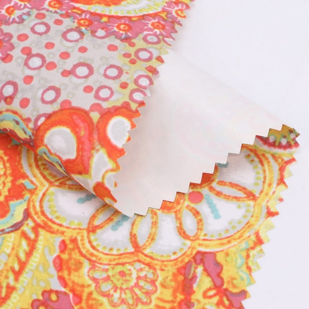 This is a 2-Layer TPU Laminate Waterproof Breathable Recycled plain weave peach skin Fabric,its face material is a recycled plain weave peach skin Fabric with water-repellent and printing finish,its back material is a waterproof breathable TPU membrane.It is water and wind rsistant,waterproof,breathable ideal for jacket,outerwear,outdoor clothing,workwear etc.It will require a 3rd protective layer or tricot,mesh or fleece for most applications.