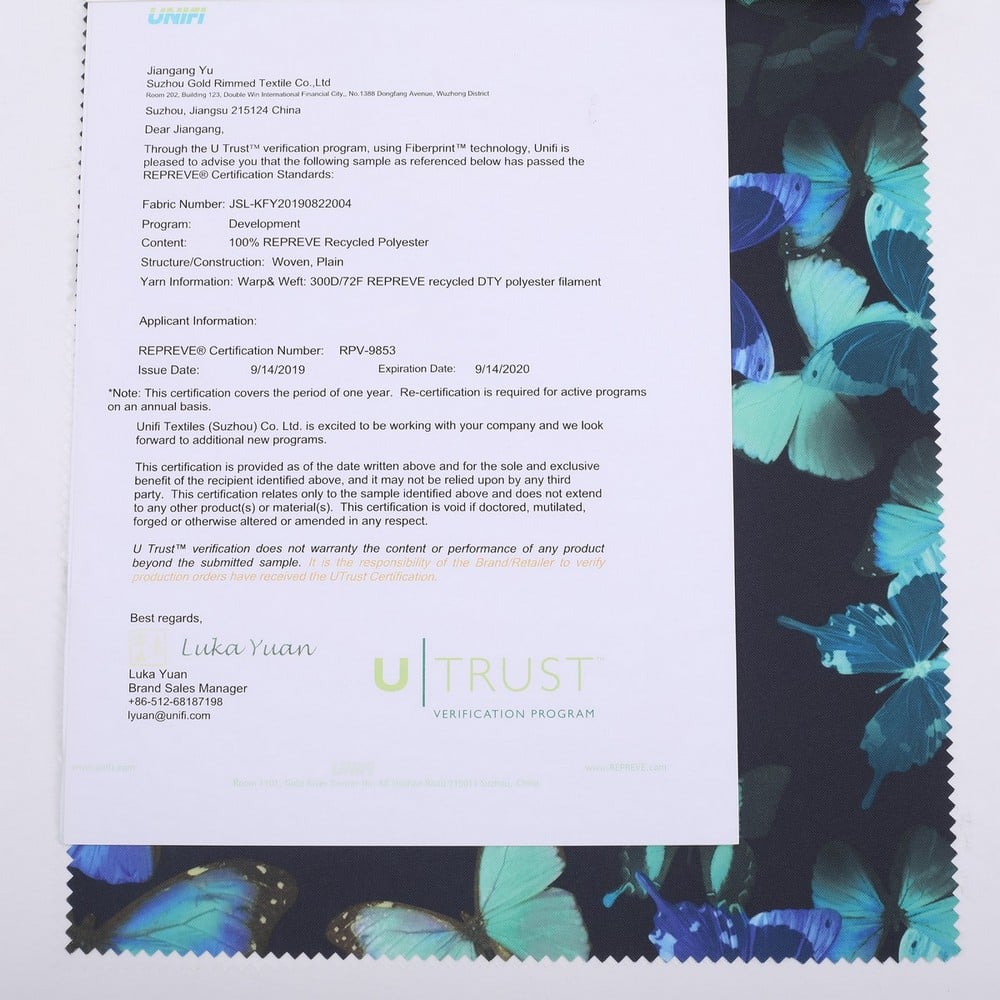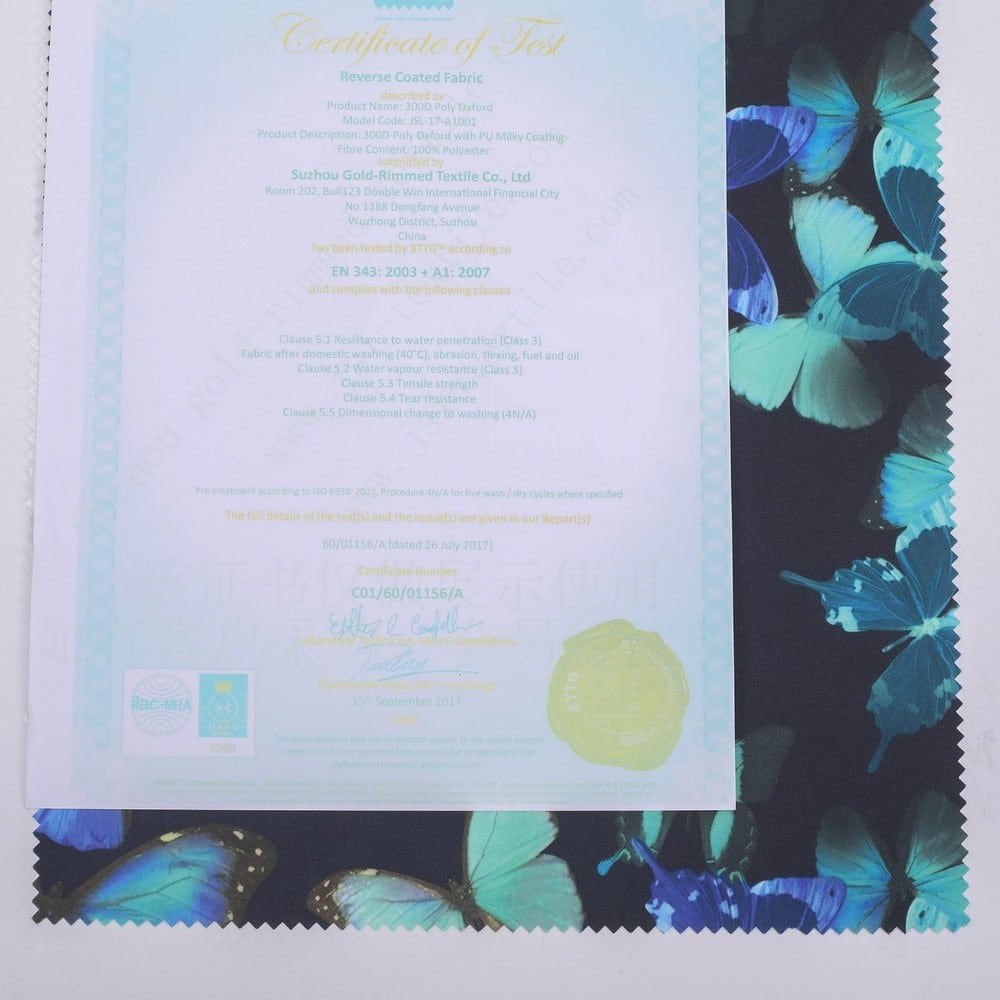 12)Quality Control System: Recycled polyester oxford fabric is GRS certificated in every step (Greige,Dyeing and Finising) must be checked,and every dye lot or finishing lot must be tested in our laboratory or other authorities,we promise only ship goods with good quality.