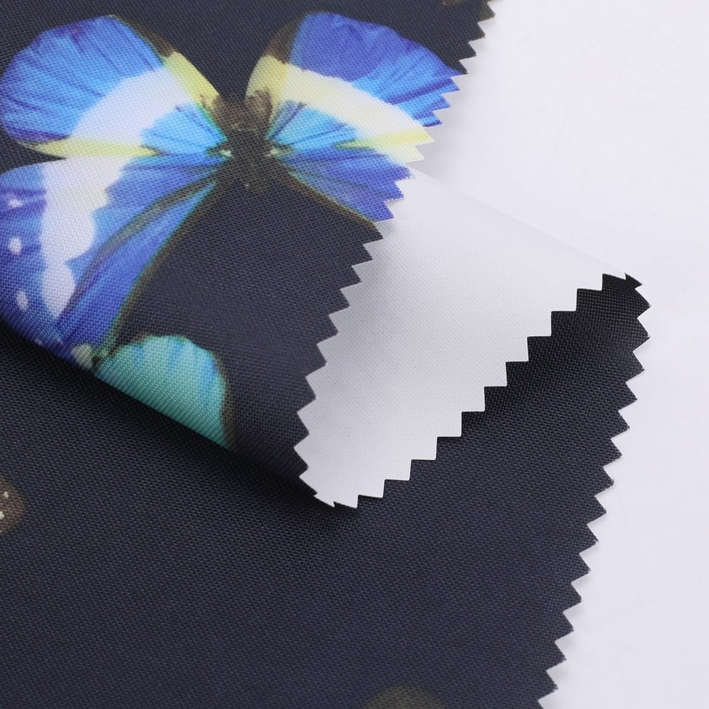 Recycled polyester oxford fabric AOP+W/R+PU Coating WP/MVP: 3K/3K with GRS certificated
