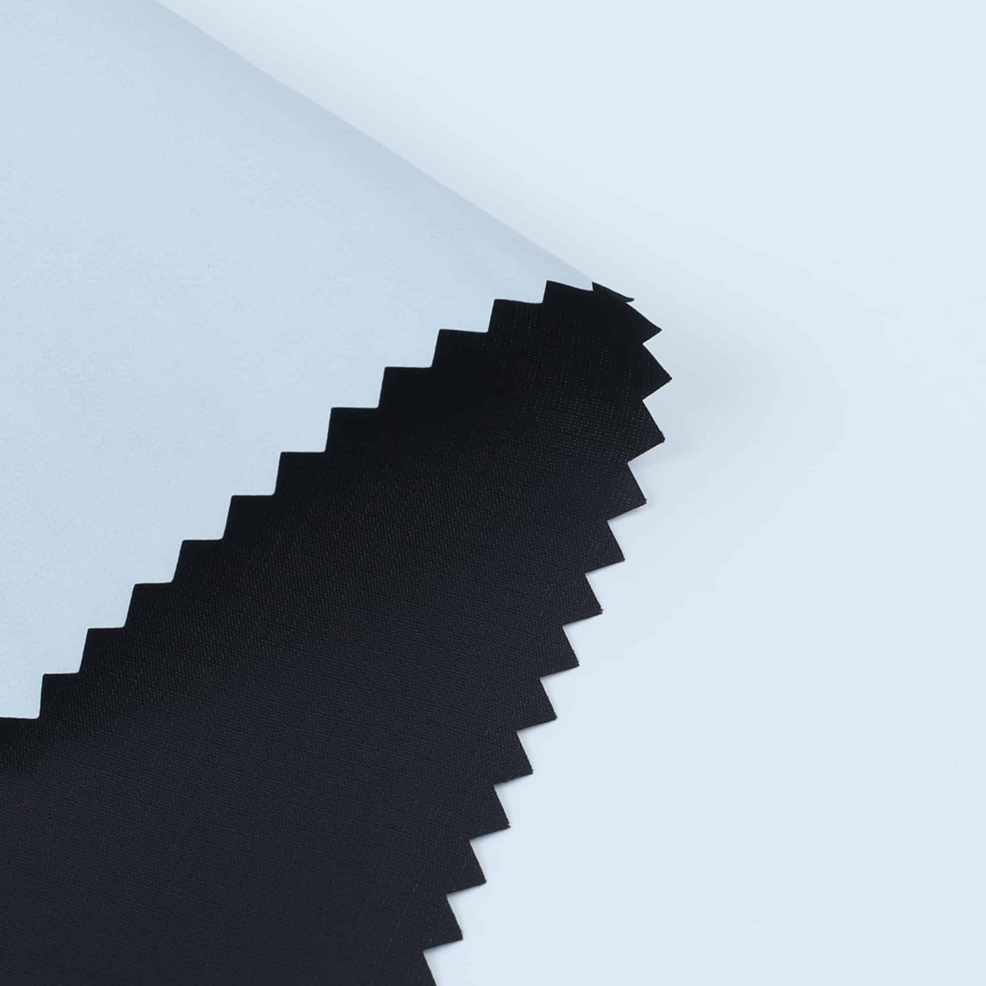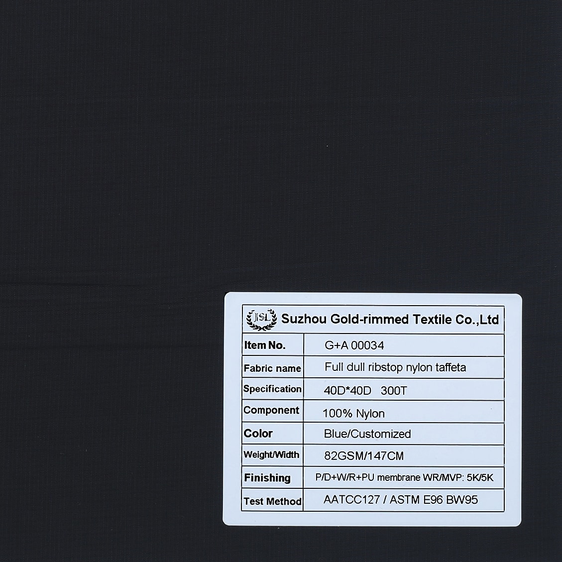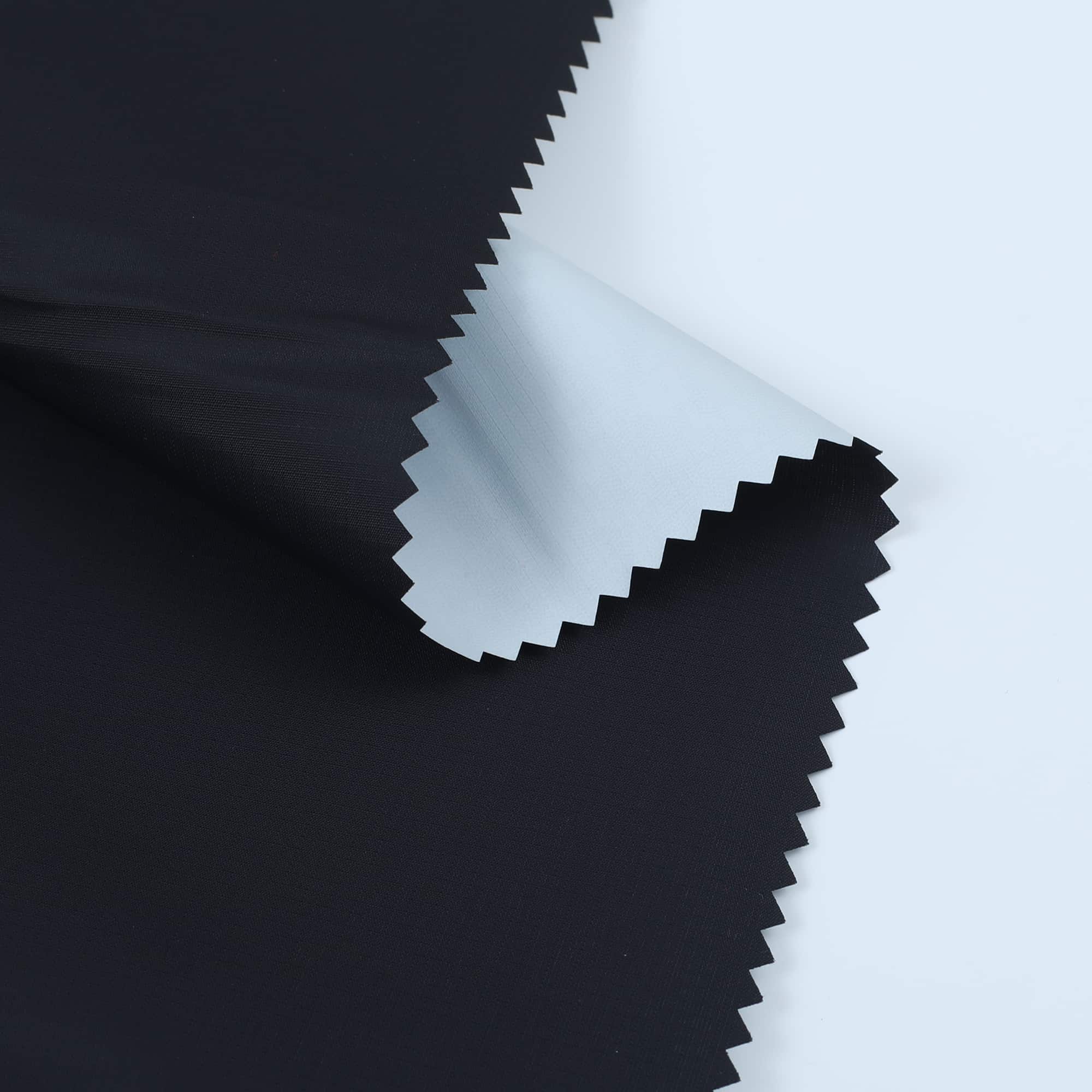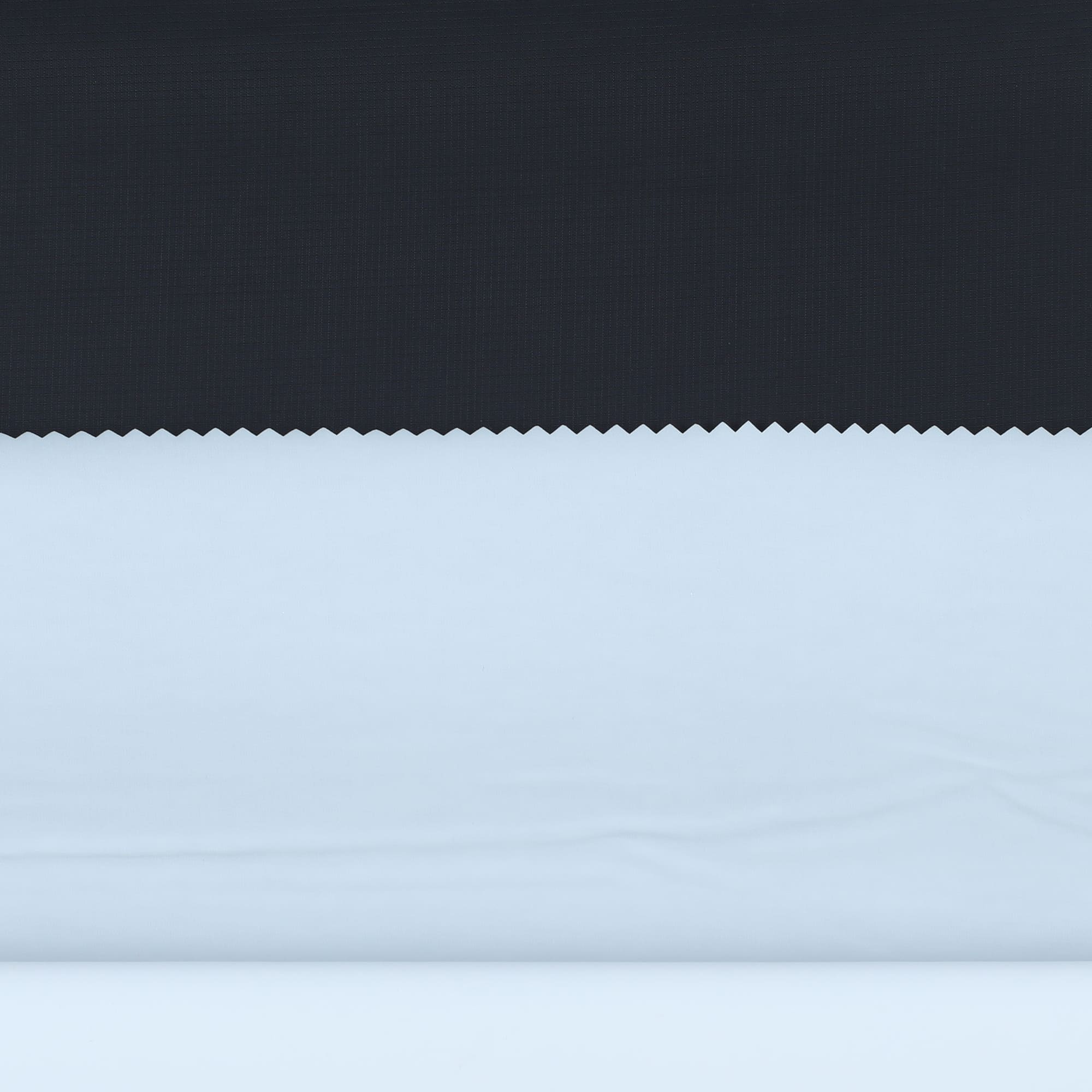 This is Full dull ribstop nylon taffeta fabric P/D+W/R+PU membrane WR/MVP: 5K/5K ,its face material is a full dull ribstop nylon taffeta fabric with waterproof and breathable finish.It is super thin,anti-uv, water and wind resistant,waterproof,breathable,durable,ideal for sun-proof clothing,Anti-UV jacket, super light wear etc.