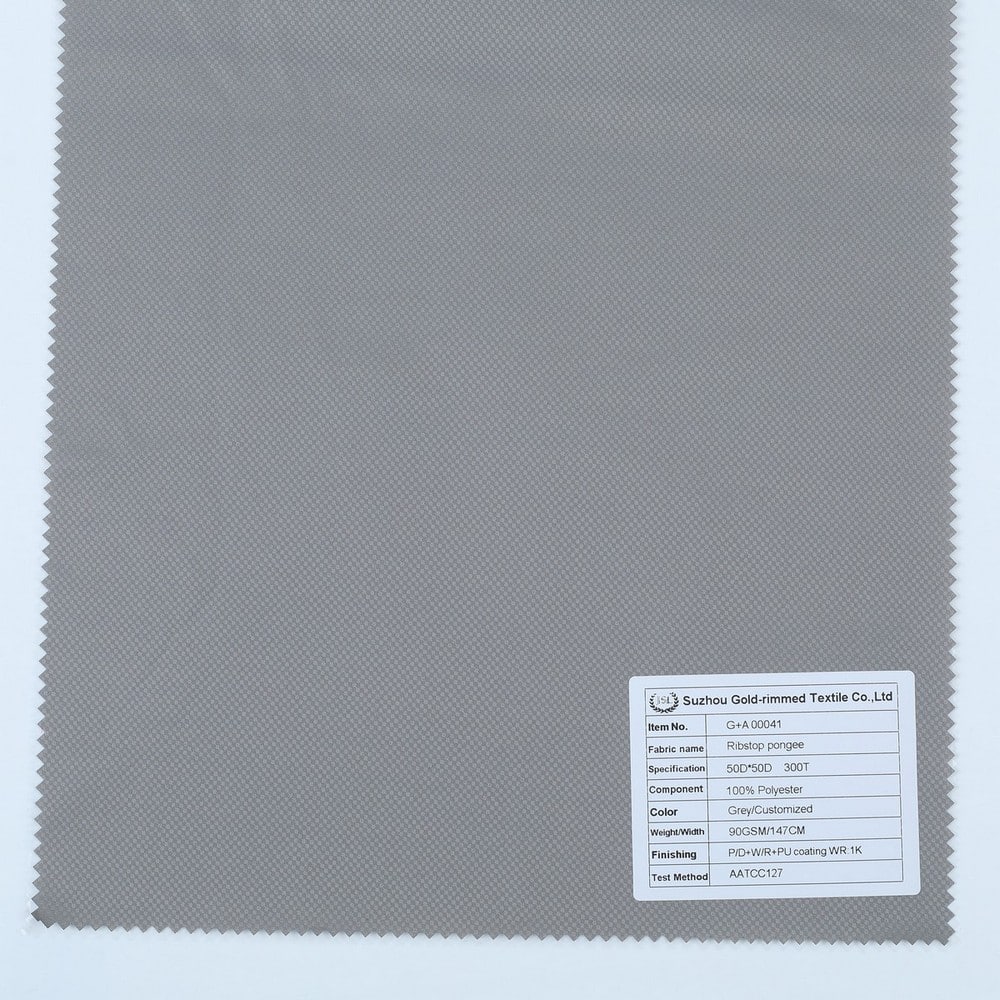 This is 2- Layer Ribstop pongee fabric P/D+W/R+PU coating WR:1K and meet with ISO 811 ,its face material is a 100% polyester Ribstop pongee fabric with water-repellent finish,its back material is with PU coating 1K.It is water and wind resistant,waterproof,durable,ideal for Leisure wear, outerwear, windproof jacket,Anti-UV jacket,etc.