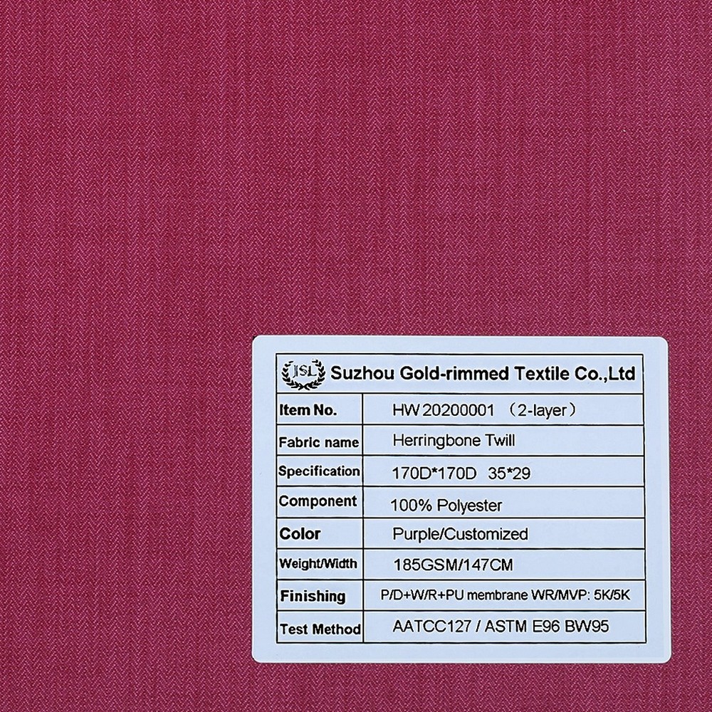 This is 2- Layer Herringbone Twill fabric with P/D+W/R+PU membrane WR/MVP: 5K/5K and meet with ISO 811/ASTM E96 BW95 ,its face material is a Herringbone Twill fabric with water-repellent finish,its back material is a waterproof and breathable PU membrane WP/MVP: 5K/5K.It is water and wind resistant,waterproof,breathable,durable,ideal for Leisure wear, outerwear, windproof jacket,Anti-UV jacket,etc.