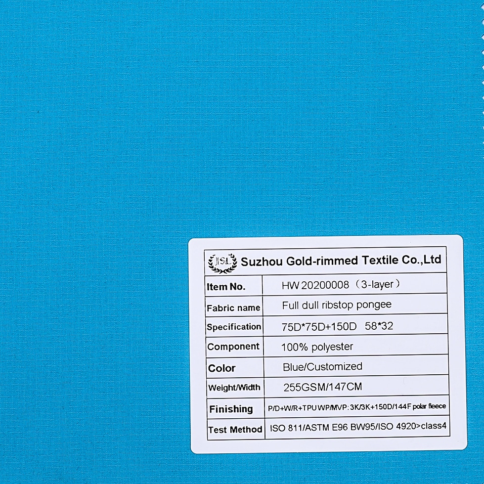 This is a 3-Layer 100% polyester full dull ribstop pongee fabric