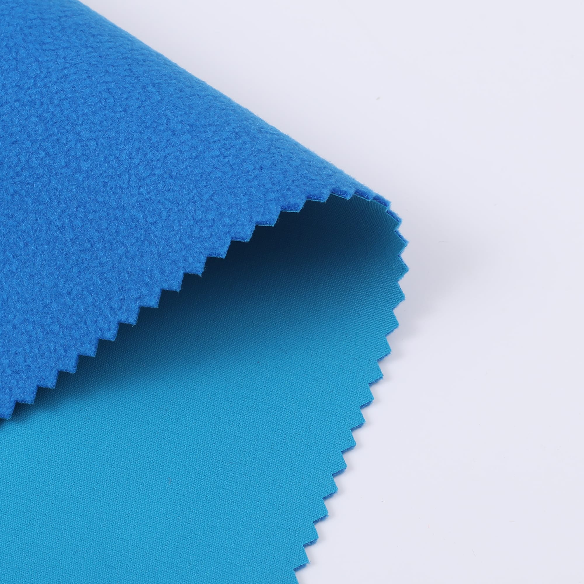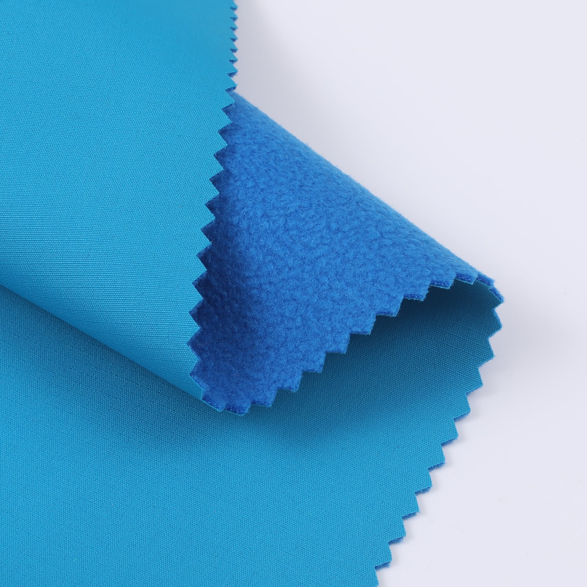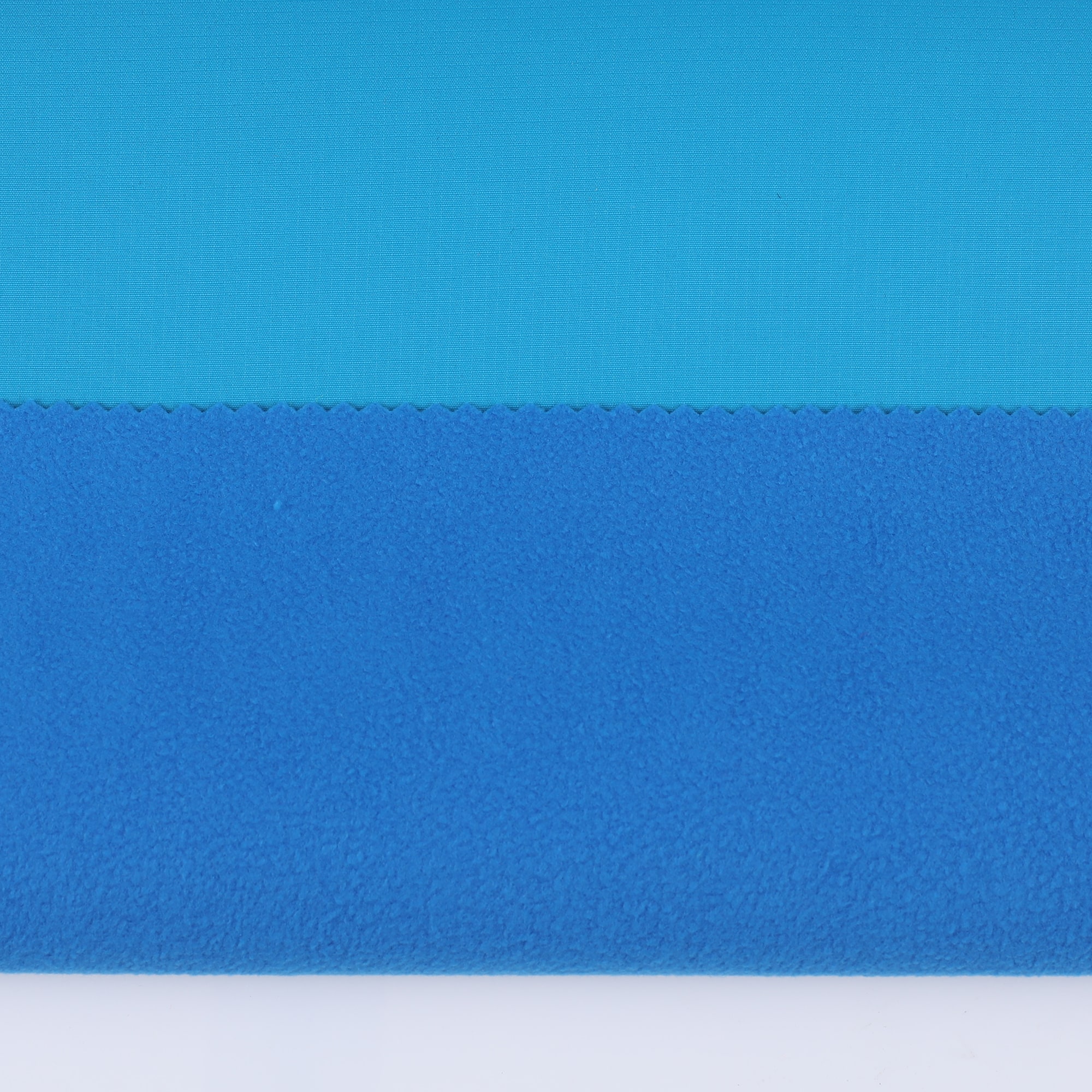 P/D+W/R+TPU WP/MVP: 3K/3K+150D/144F polar fleece,its face material is a polyester full dull ribstop pongee fabric with water-repellence finish,its back material is a Waterproof Breathable TPU membrane bonded with polar fleece,it is water-resistant,waterproof,windproof,breathable,durable,suitable for Shell Jacket,Skiwear,Ski Suit,Outdoor Clothing,etc.