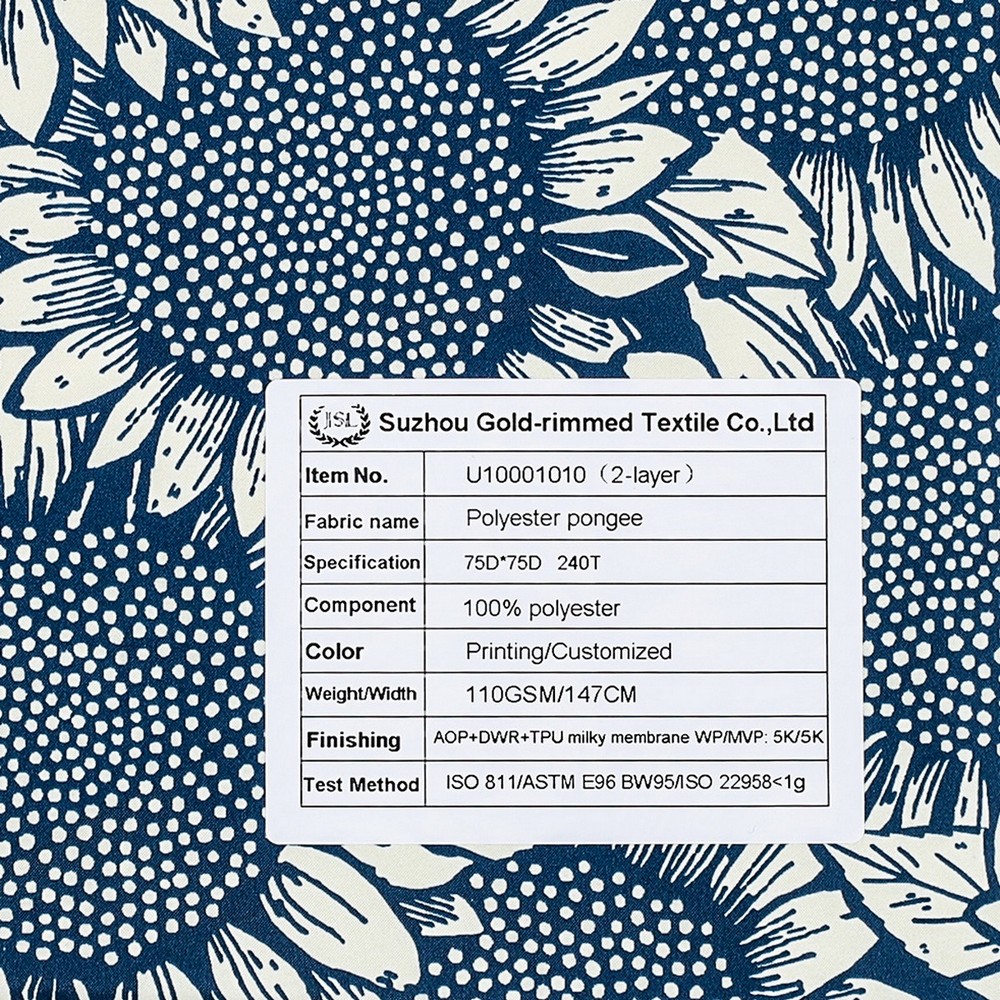 Resistance to Water Penetration (Hydrostatic Pressure Test): ≥5,000mm H2O before Washing (AATCC127)