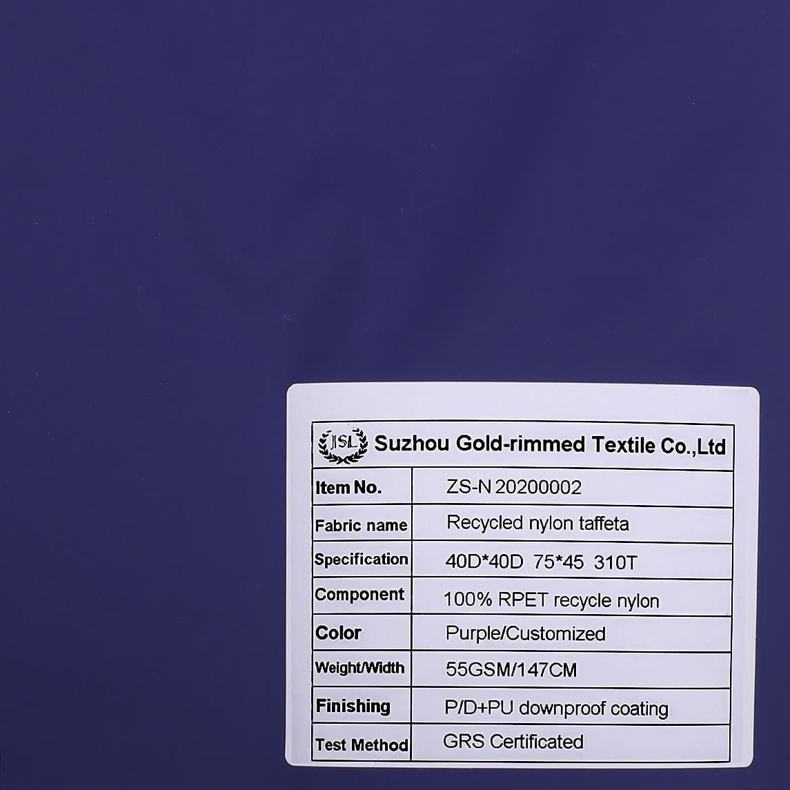 2)Description: Recycled nylon taffeta fabric P/D+PU downproof coating ,used for Jacket,Down coat,Sun-proof clothing,Outdoor Clothing,Lining etc.
