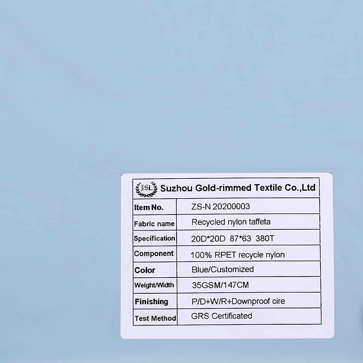 12)Quality Control System: Recycled nylon taffeta fabric is GRS certificated in every step (Greige,Dyeing and Finising) must be checked,and every dye lot or finishing lot must be tested in our laboratory or other authorities,we promise only ship goods with good quality.