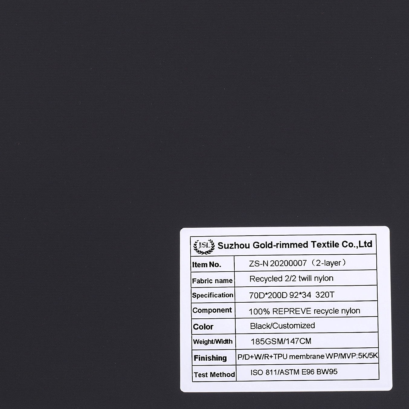12)Quality Control System: 2-Layer Recycled 2/2 twill nylon fabric is GRS certificated in every step (Greige,Dyeing and Finising) must be checked,and every dye lot or finishing lot must be tested in our laboratory or other authorities,we promise only ship goods with good quality.