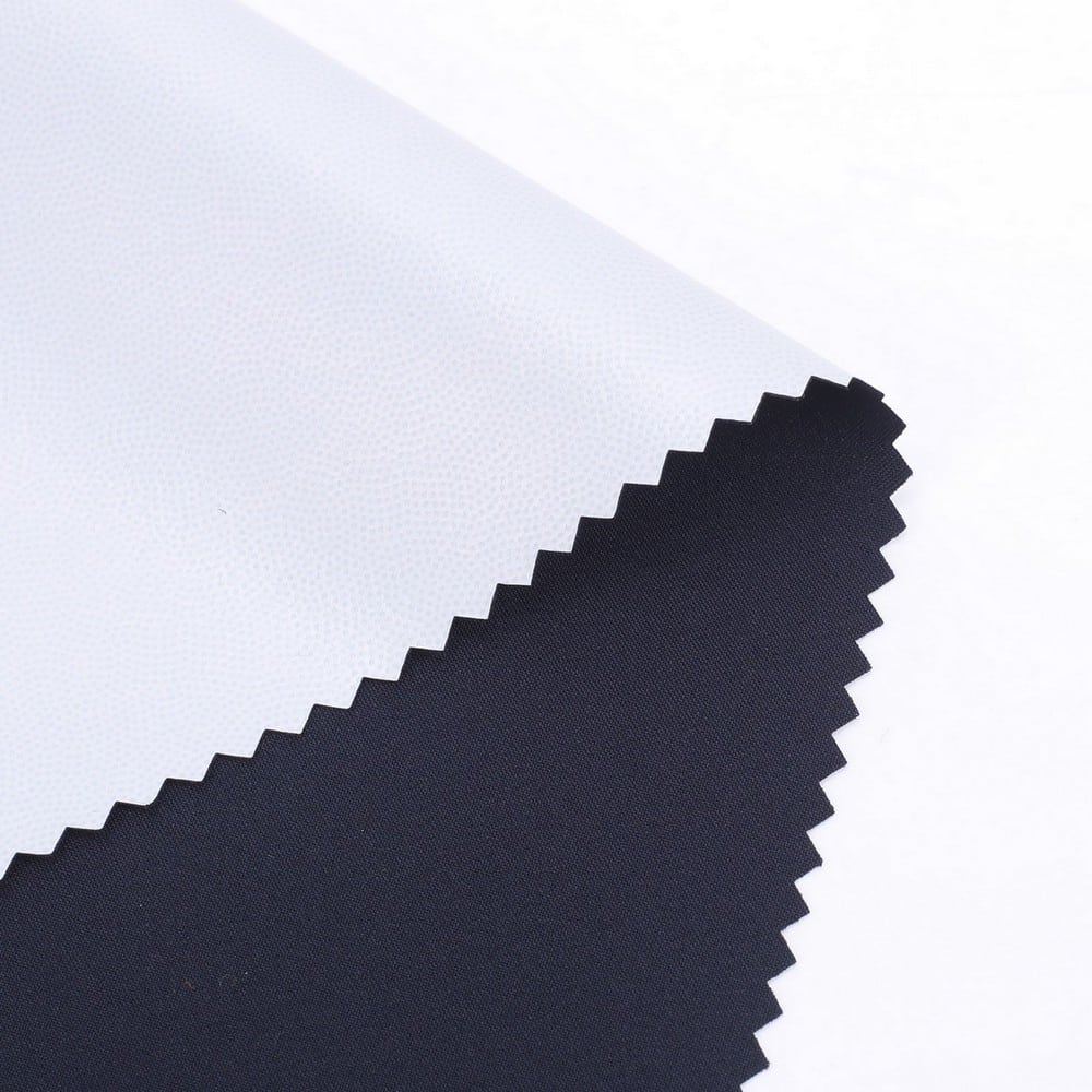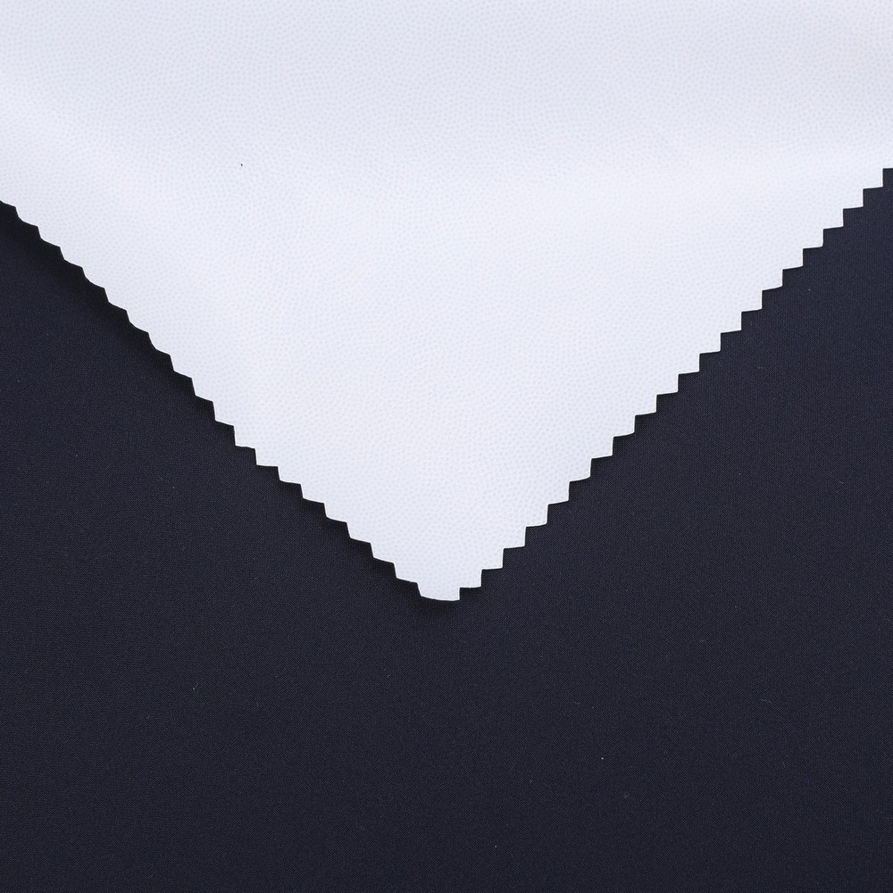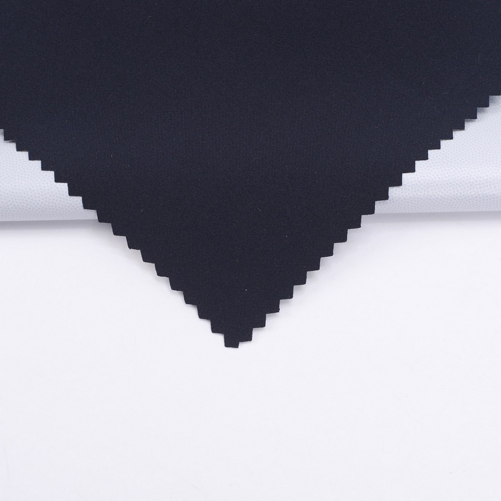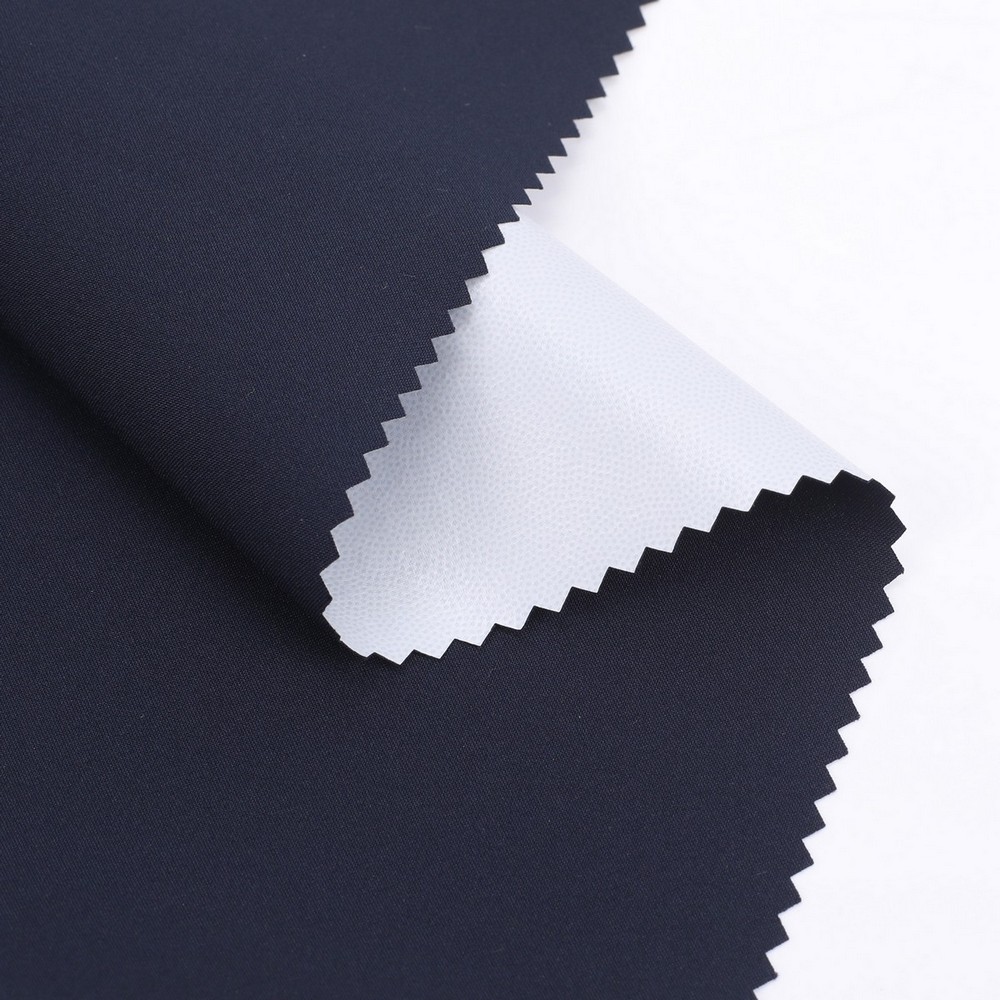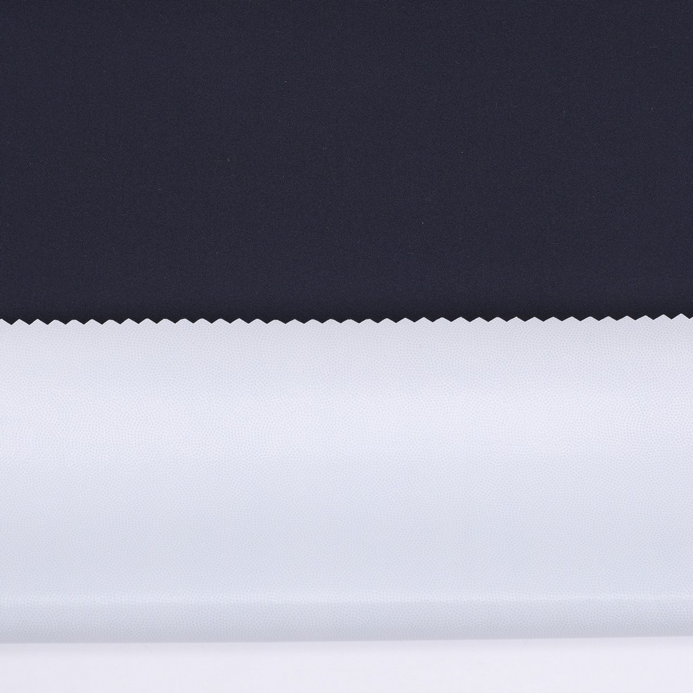 This is a 2-Layer TPU Laminate Waterproof Breathable Recycled plain weave mechnical spandex Fabric,its face material is a Recycled plain weave mechnical spandex Fabric with water-repellent ,its back material is a waterproof breathable TPU membrane.It is water and wind rsistant,waterproof,breathable ideal for jacket,outerwear,outdoor clothing,workwear etc.It will require a 3rd protective layer or tricot,mesh or fleece for most applications.